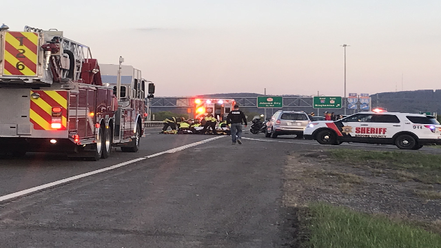 Route 201 southbound was blocked off Tuesday night because of a crash involving a motorcycle.